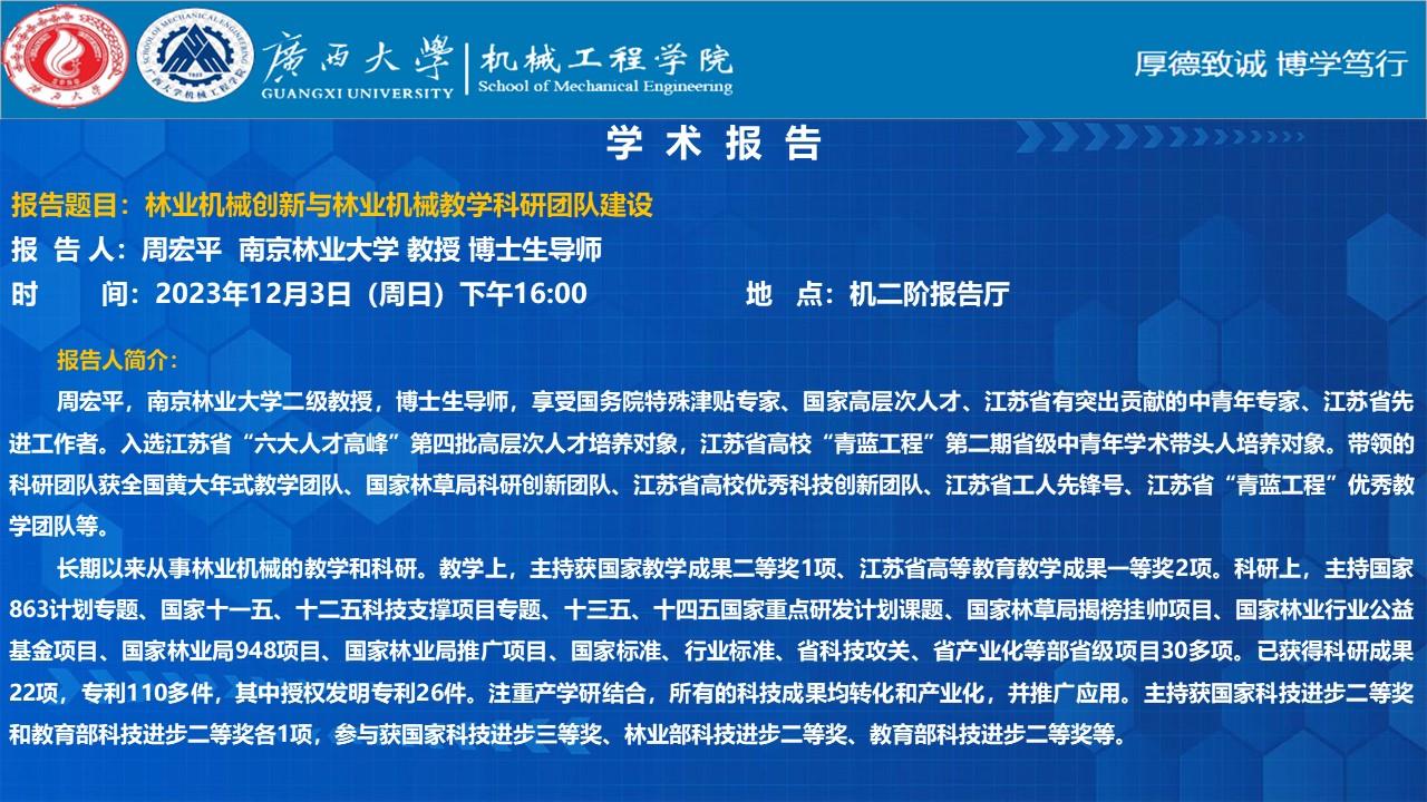 【beat365亚洲版官网学术报告】林业机械创新与林业机械教学科研团队建设