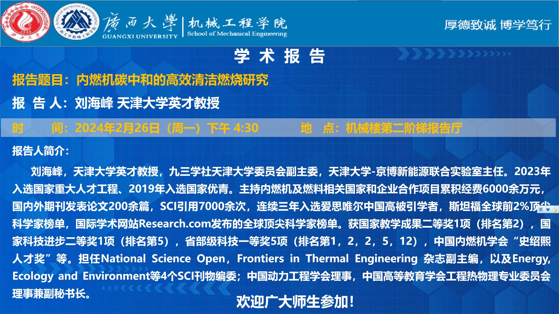 【beat365亚洲版官网学术报告】内燃机碳中和的高效清洁燃烧研究