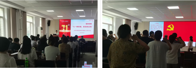为庆祝中国共产党成立104周年,深情回顾党的光辉历程,激励全体党员传承红色基因、永葆奋斗本色,79日,Beat365中文官方网站党委在鸣龙楼208会议室隆重开展七一铸党魂,奋进新征程主题党日活动,全体教师党员齐聚一堂,通过重温入党誓词、聆听初心故事、共度政治生日等丰富环节,进一步淬炼党性修养,强化政治担当,凝聚奋进力量。