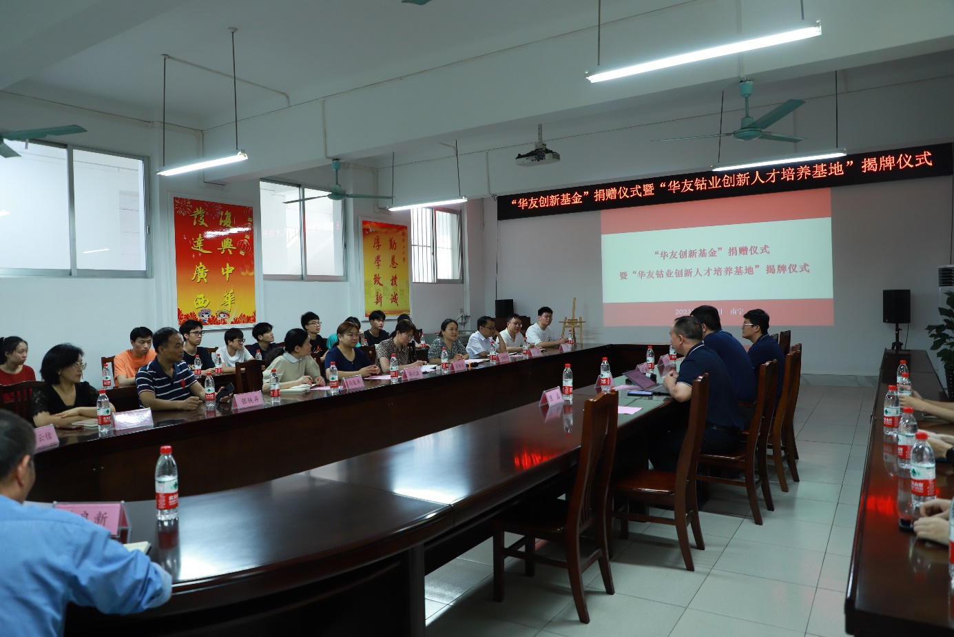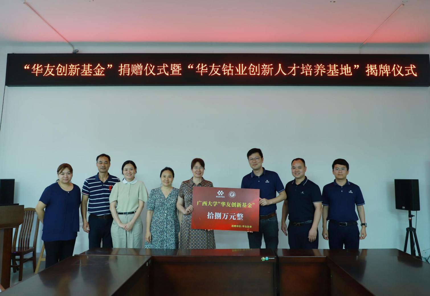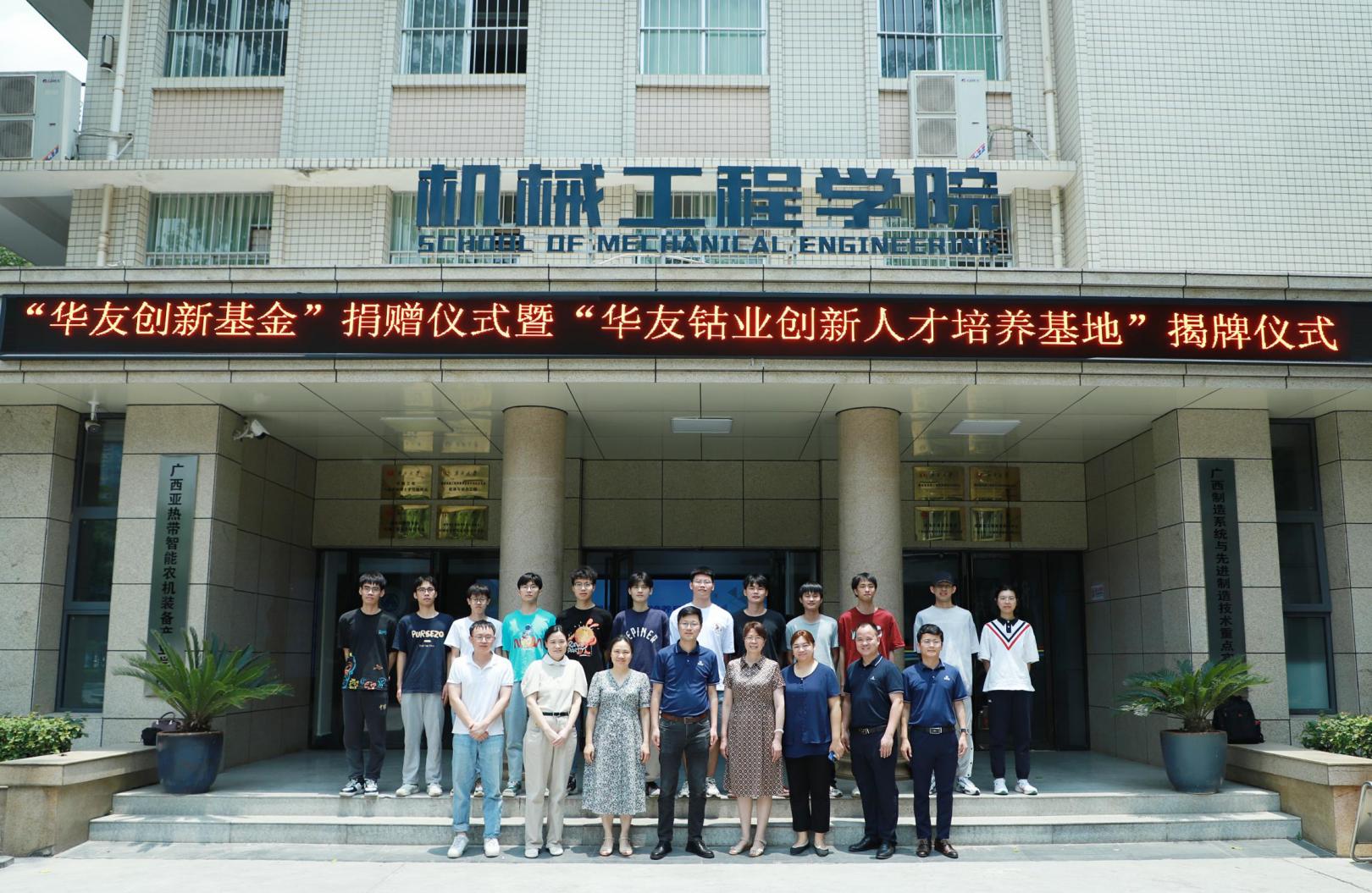 5月19日上午,浙江华友钴业广西华友工程项目管理有限公司人力资源中心总经理王敏一行到访beat365官网,与beat365官网领导和师生座谈交流,并共同举办“华友创新基金”捐赠仪式暨“华友钴业创新人才培养基地”揭牌仪式。仪式由党委副书记黄路明主持,学院常务副院长蒙艳玫、副院长高欲垚、学科竞赛指导老师马俊燕、张铁异以及学院全体辅导员出席仪式。