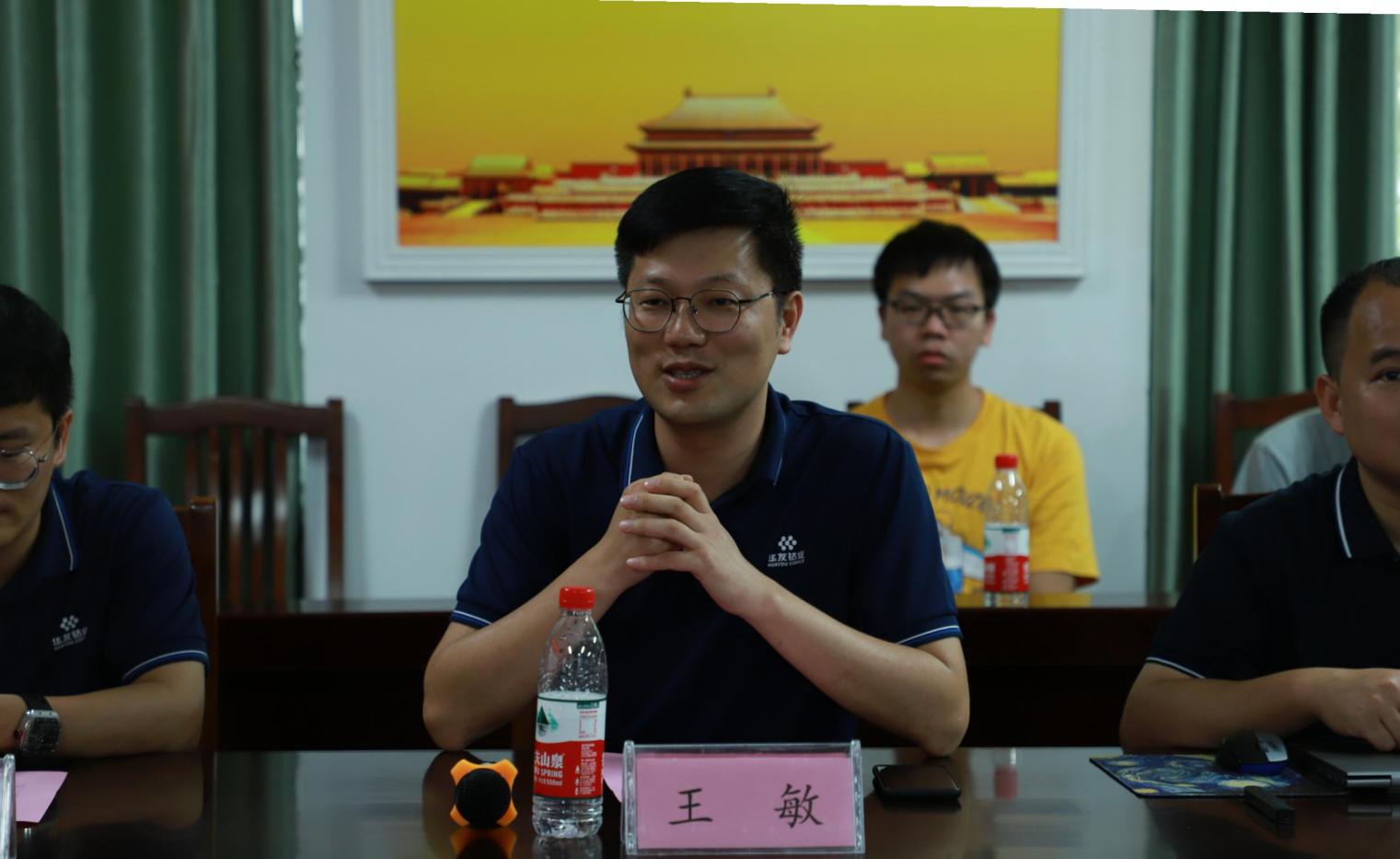 在座谈交流中,蒙艳玫副院长向来宾介绍了学院近年来的发展情况,并对华友钴业公司捐赠创新基金和建立创新人才培养基地表示感谢。王敏总经理对与beat365官网建立合作关系表示非常欣喜,他本人是beat365官网2009届本科毕业生,对学院一直有非常深厚的感情,希望未来双方能在创新人才培养、产学研合作、毕业生就业等方面开展深入的合作。广西华友工程项目管理有限公司招聘管理部部长蔡日保对华友钴业公司及广西华友工程项目进行了详细的介绍,欢迎beat365官网优秀创新人才能加盟华友钴业。