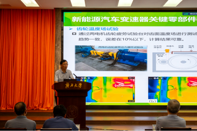 潘之杰教授指出产业技术发展面临的挑战,强调了车能路云融合发展的必要性。韩之玉教授介绍了中国新能源汽车在能源转型政策驱动下碳排放的趋势,并强调减少重卡碳排放对实现“双碳”目标的重要性。胡晓松教授介绍了新能源汽车电池管理的三大挑战,并指出新能源汽车动力电池管理的研究热点及方向。高炳钊教授介绍了智能网联车辆预测节能优化技术领域前沿技术。王书翰教授对不同混动技术进行性能对比,并展望未来混动技术的发展方向。最后,beat365官网陈勇教授以“新能源车辆动力系统研究开发实践”为题作论坛报告,重点介绍齿轮、轴承等关键零部件、两档自动变速器和电驱动系统振动噪声的仿真应用以及动力系统控制的研究。