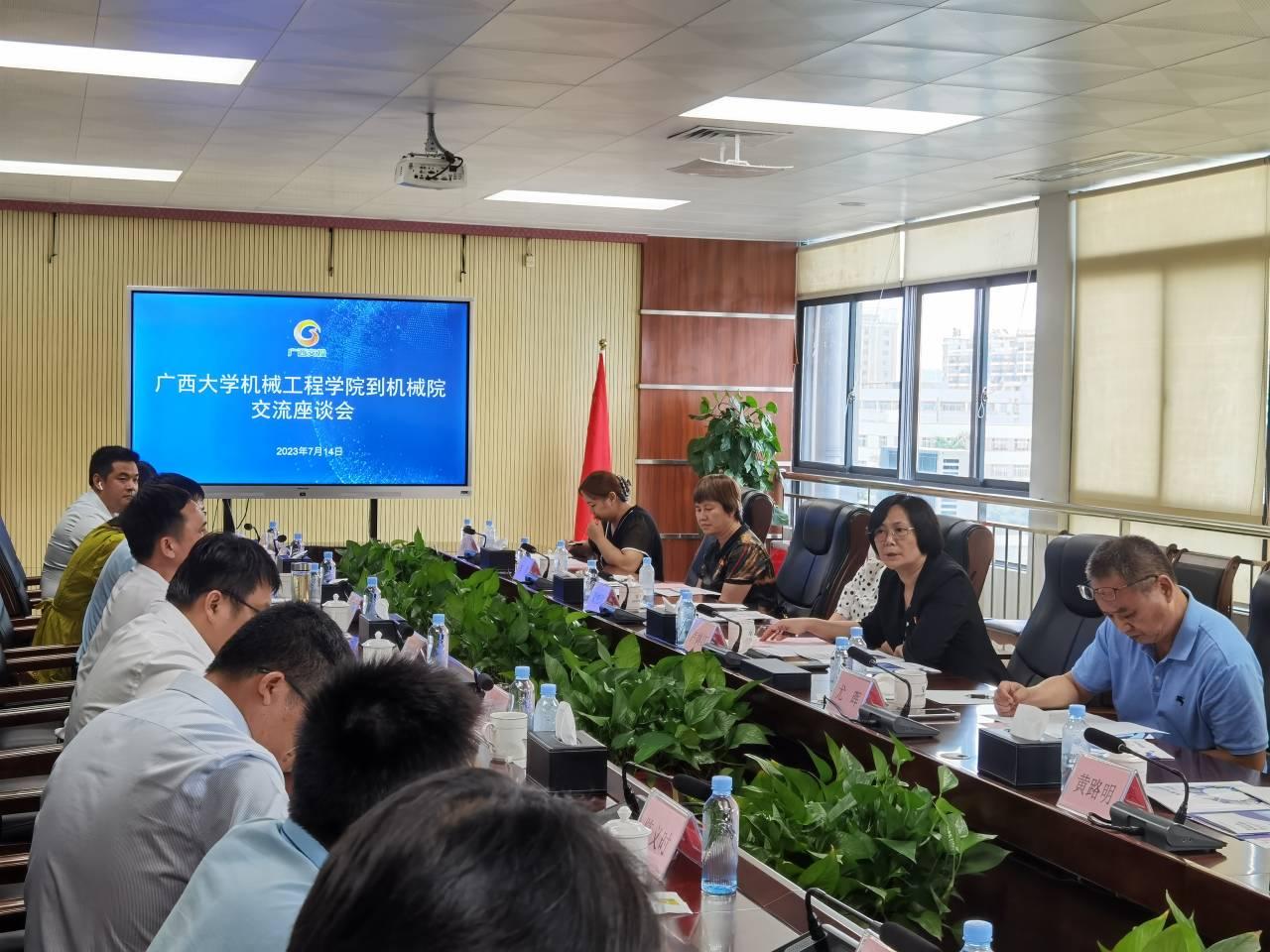 为深入推进校企双方产教融合工作,7月14日,学院领导班子到广西机械工业研究院有限责任公司(以下简称机械院)调研。学院党委书记卢婵江、院长尤晖、党委副书记兼常务副院长蒙艳玫、党委副书记黄路明、副院长贺德强、李俚、高欲垚等班子成员,机械院党委书记兼董事长谭洪河、副总经理吴湘柠、张培铭等参调研与座谈。