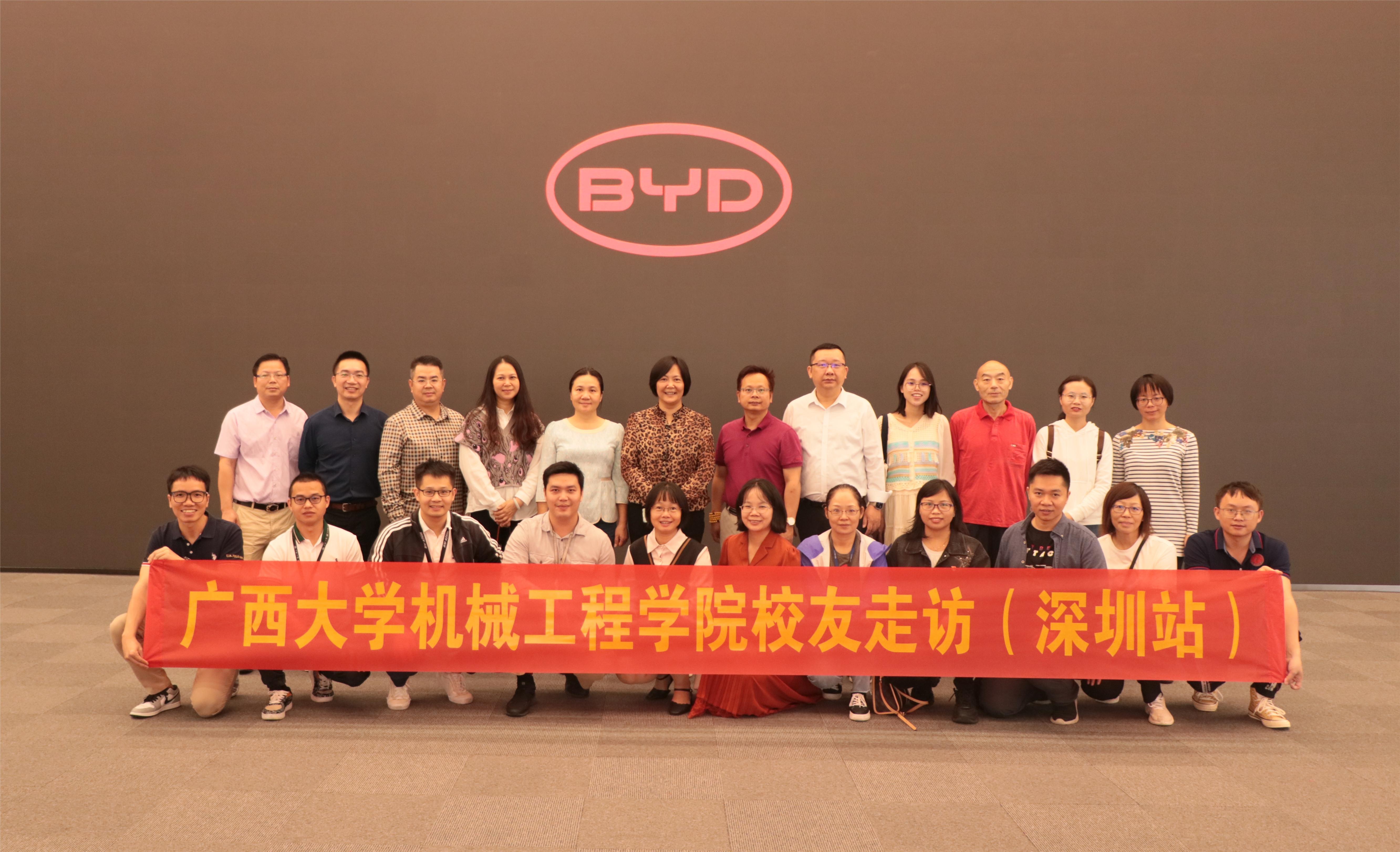 10月22日,在位于深圳的比亚迪全球总部,卢婵江书记、黄路明副书记一行与深圳亿道控股有限公司总经理钟景维、海拓华擎生物科技有限公司何毅总经理、比亚迪汽车工程院段月星等20余名机械校友一同参观比亚迪全球中心展厅,并在礼宾楼会议室和校友进行座谈交流。卢婵江书记向各位校友介绍了学院近年来的发展,特别是近年来在人才培养、学科建设、招生就业等方面所取得的进步以及本次“广东工业行”活动目的和体会。钟景维等创业校友给在读师生分享了自己的创业经历和成长体会,并就未来发展给师弟师妹们提出了殷切的期望和建设性的意见。最后,卢婵江书记代表学院向校友们发出诚挚的邀请,希望校友们能在11月18日返校同贺beat365亚洲版官网建院90周年庆典,助力beat365亚洲版官网的办学更上台阶!
