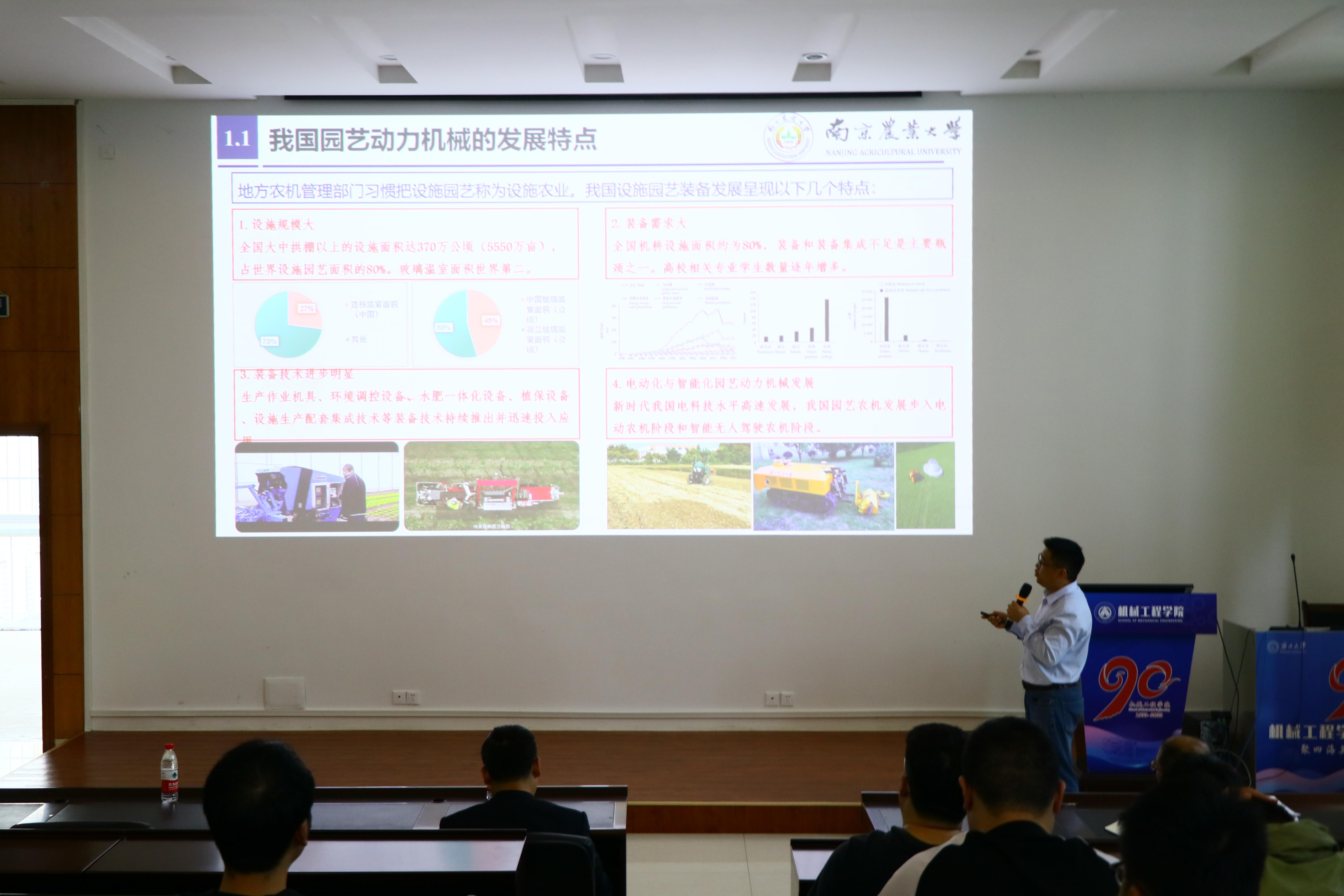 11月24日,南京农业大学工学院教授、博士生导师肖茂华和南京林业大学机电学院林机系主任陈青副教授受邀到访beat365官网,肖教授为学院师生做了以“电动智能园艺动力机械发展关键技术”为题的学术报告。副院长贺德强主持报告会。