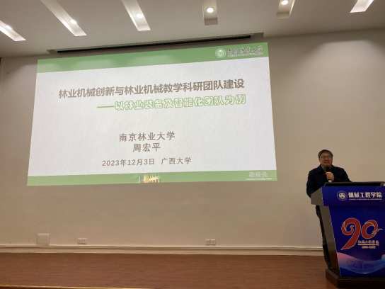 12月3日下午,周宏平教授为学院师生作“林业机械创新与林业机械教学科研团队建设”学术报告。周教授结合团队获得的国家科技奖详细介绍了林业植保、经济林果机械方面多年的丰硕研究成果,分享了其教学科研团队建设经验,让师生们了解到林业机械的相关知识和前沿发展方向,开拓了师生的视野,使师生们受益匪浅,受到在场师生的广泛好评。最后,周宏平教授与在场师生就林业机械创新与林业机械教学科研团队建设方面的问题进行了互动交流与讨论。