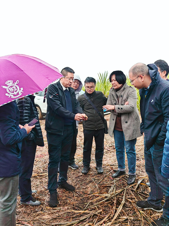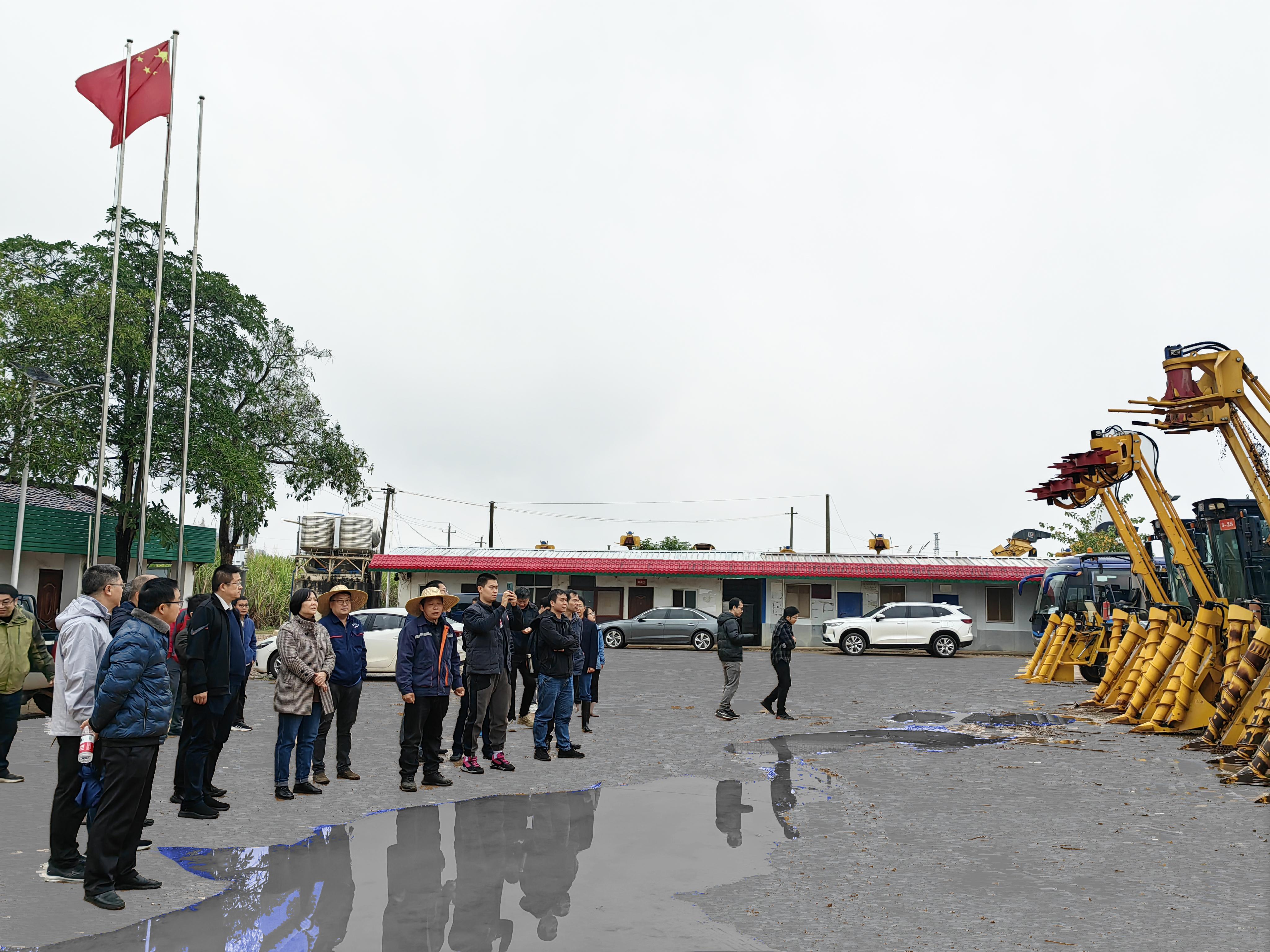 为加快推进亚热带智能农机装备现代产业学院(以下简称“产业学院”)工作部署,促进政校企深度合作,推进“政产学研用推”融合,1月12日上午,学院党委书记卢婵江一行20人赴扶绥开展调研,一同参加的还有自治区农机化服务中心、产业学院共建单位广西农业机械研究院有限公司和惠来宝机械制造有限公司相关负责人。在自治区农机中心鉴定站站长叶长青的带领陪同下,先后深入“甜蜜之光”隆田糖料蔗示范区、区农机中心试验鉴定工作站以及beat365官网农科新城科研用地进行走访调研,了解目前甘蔗收割机等装备应用情况、甘蔗生长情况及种植农艺、品种等。