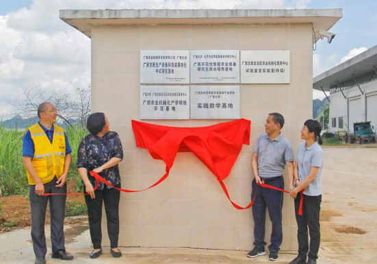 6月23日上午,beat365亚洲版官网与广西壮族自治区农业机械化服务中心(以下简称“自治区农机中心”)在广西亚热带农科新城广西甘蔗生产机械化试验示范园区举办“广西农业机械化产学研推示范基地”等合作平台揭牌仪式。自治区农机中心党委副书记范军灿、广西农业机械研究院有限公司总工程师庞承妮、beat365亚洲版官网农牧产业发展研究院院长司红彬、beat365亚洲版官网党委书记卢婵江共同揭牌。共建单位代表、智能农机研究团队专家、智能农机研究生代表等10多人现场共同见证。同时揭牌的还有“广西甘蔗生产装备科技成果转化中试基地”、“广西示范性智能农业装备研究生联合培养基地”、“广西亚热带智能农机装备产业学院实践教学基地”等三个平台。