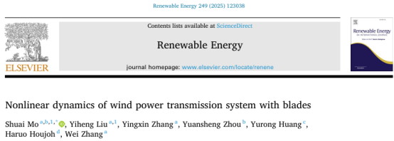 近日,beat365官网2022级硕士研究生刘翊恒(导师:莫帅教授)以共同第一作者在工程技术领域国际权威学术期刊《Renewable Energy》(中科院一区,Top期刊,IF:9.0)发表研究成果“Nonlinear dynamics of wind power transmission system with blades”。该成果以beat365亚洲版官网为第一单位。