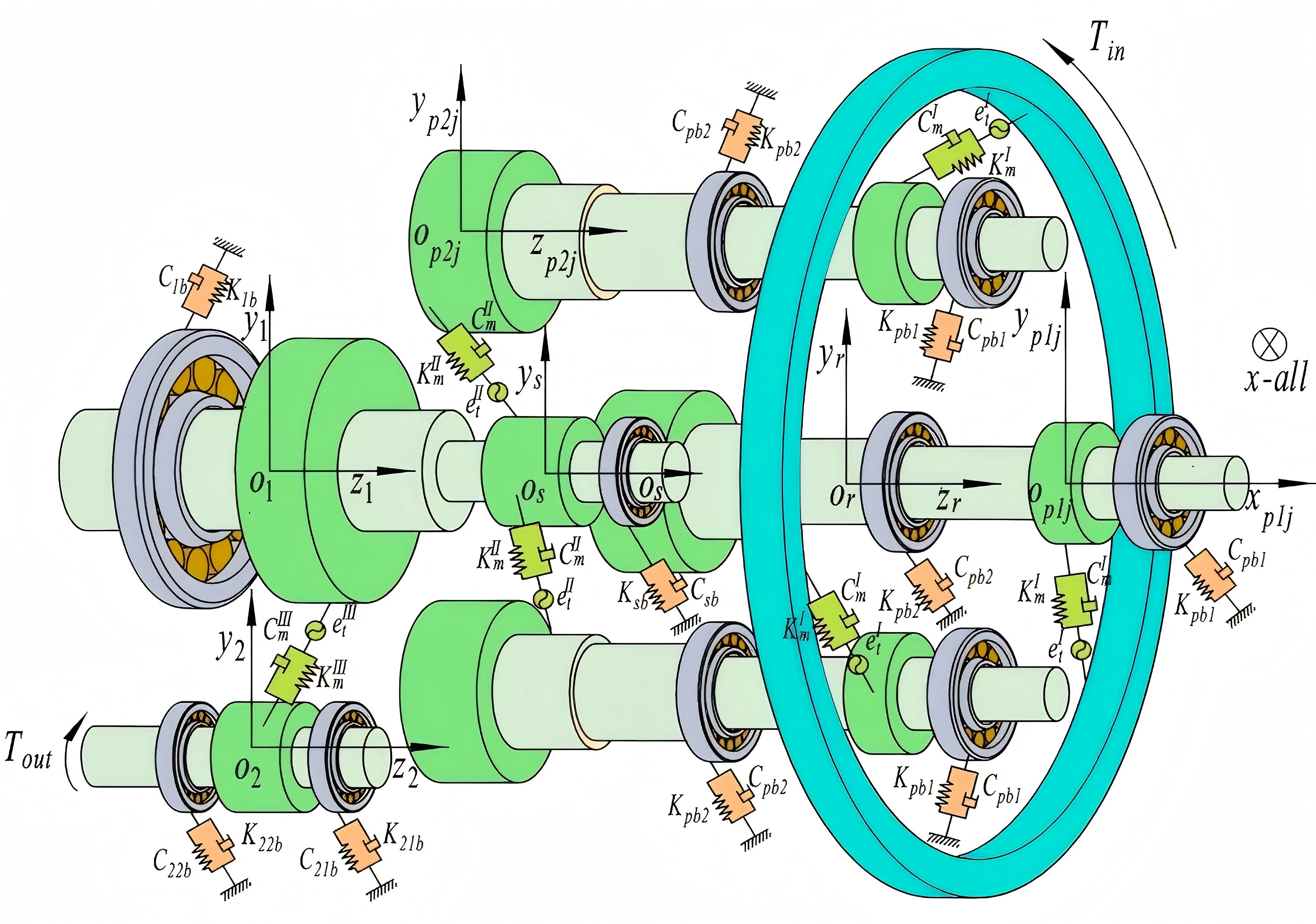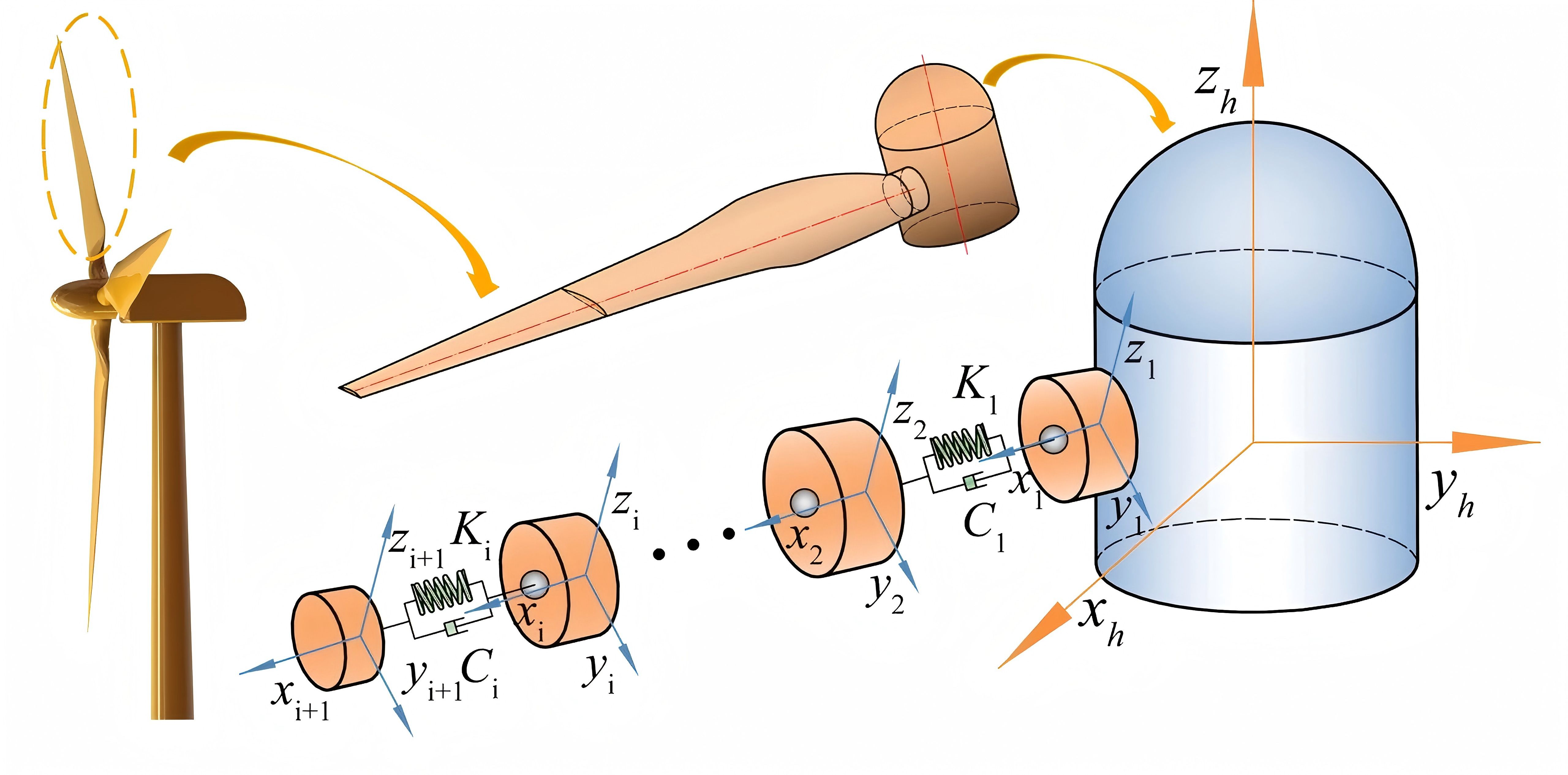 随着风能经济的大力发展,以及风电机组大型化与复杂化,风电传动系统在气动、机械耦合作用下的非线性振动、载荷突变及动态失稳问题日益突出,直接影响机组可靠性及寿命。因此,建立风电传动系统动力学模型,研究叶片柔性变形与风电齿轮-轴承传动系统振动的耦合机理,对指导变桨控制策略优化,降低传动链疲劳损伤,提升风电机组对复杂环境载荷的适应性具有重要意义。