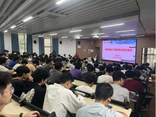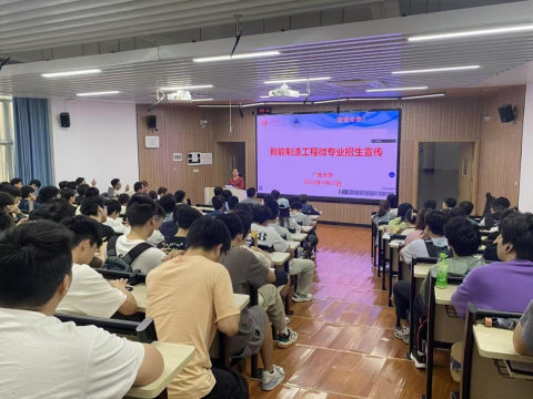 2025年5月25日上午,beat365官网在第十教学楼10A-101教室召开《智能制造工程》微专业招生宣传会,会议邀请了教务处谢健副处长、兄弟学院副院长、北京华航唯实机器人科技股份有限公司、国投融合科技股份有限公司、海尔智家股份有限公司等合作企业参加,会议由学院党委副书记黄路明主持,副院长李俚作总结讲话,院长助理项载毓老师做大会的技术支持,全校相关专业将近200名学生到现场参加招生宣传会。