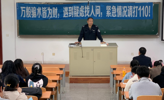 代长岭所长首先向同学们介绍了什么是“新型网络诈骗”,列举了“新型网络诈骗”的常见形式,以及诈骗犯罪分子的惯用手法、作案方式以及电信诈骗的种类和特点,以及识别、防范的方法,并用大量典型真实案例,着重强调个人的银行卡、信用卡不要外借,确保个人信息不要泄露。