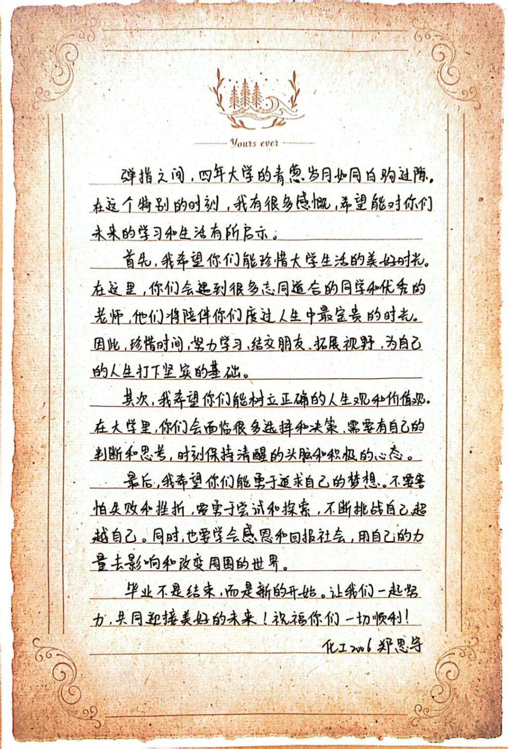 山河远阔,满眼星河;青春梦想,扬帆远航。纸短情长,继以传承,Beat365中文官方网站2024届毕业学子用一封信的形式发来了他们的深情寄语......