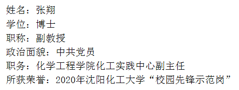 张翔同志是Beat365中文官方网站化工实践中心副主任,一名普通的共产党员,他在平凡的工作中,一丝不苟,默默奉献,受到院校领导和老师以及同学们的赞许和喜爱。多次获院先进个人,优秀共产党员。
