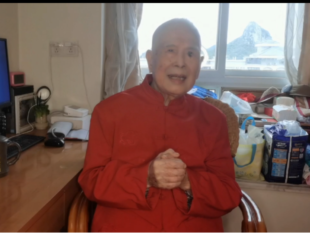 1943级校友、百岁老人熊天赐发来祝福视频