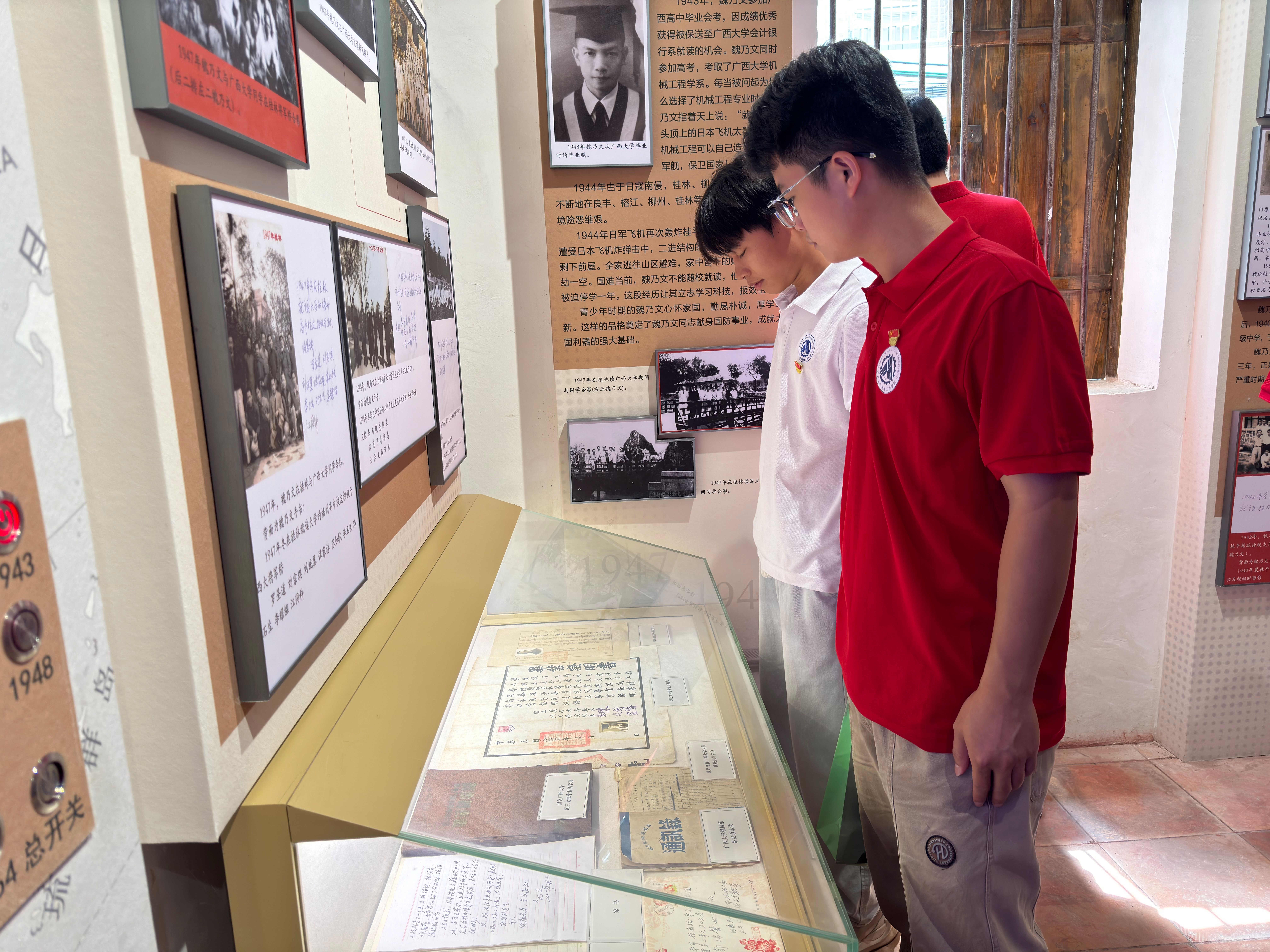 21日上午,师生党员们首先抵达位于桂平市的广西科学家精神基地——魏乃文故居纪念馆。桂平市人大常委会副主任廖恬、桂平市政府办公室副主任覃鸿全、桂平市博物馆馆长朱丽彬、魏乃文侄子魏风等到场欢迎beat365官网师生。魏乃文同志是中共党员,beat365亚洲版官网的杰出校友,我国第一代核潜艇弹道式导弹水下发射装置总设计师,曾荣获国家科技进步奖特等奖,并作为“两弹一星”突出贡献科技专家得到国家领导人的接见和表彰。