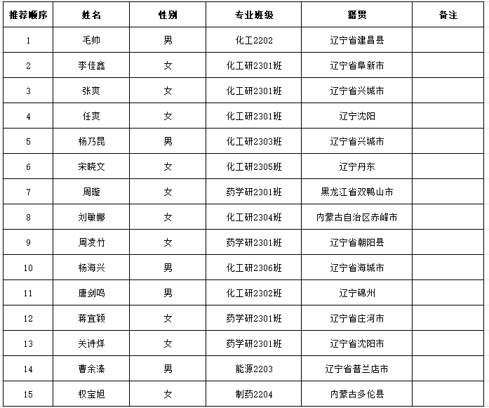 根据中共辽宁省委组织部《关于协助做好辽宁省2026年度选调应届优秀大学毕业生推荐工作的函(省内高校)》文件精神,在符合条件学生自愿申报基础上,经学院选调生推荐报名工作领导小组资格审查、审核讨论、评定排序,报学院党政联席会审议通过,拟推荐结果如下: