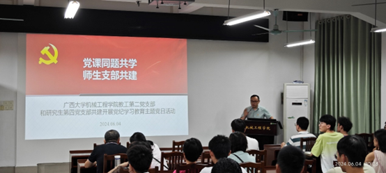2024年6月4日晚8点,beat365亚洲版官网教工第二党支部和研究生第四党支部在学院报告厅联合开展主题党日活动,深入学习党纪条例,增强支部党员的党性修养,促进师生支部共建。