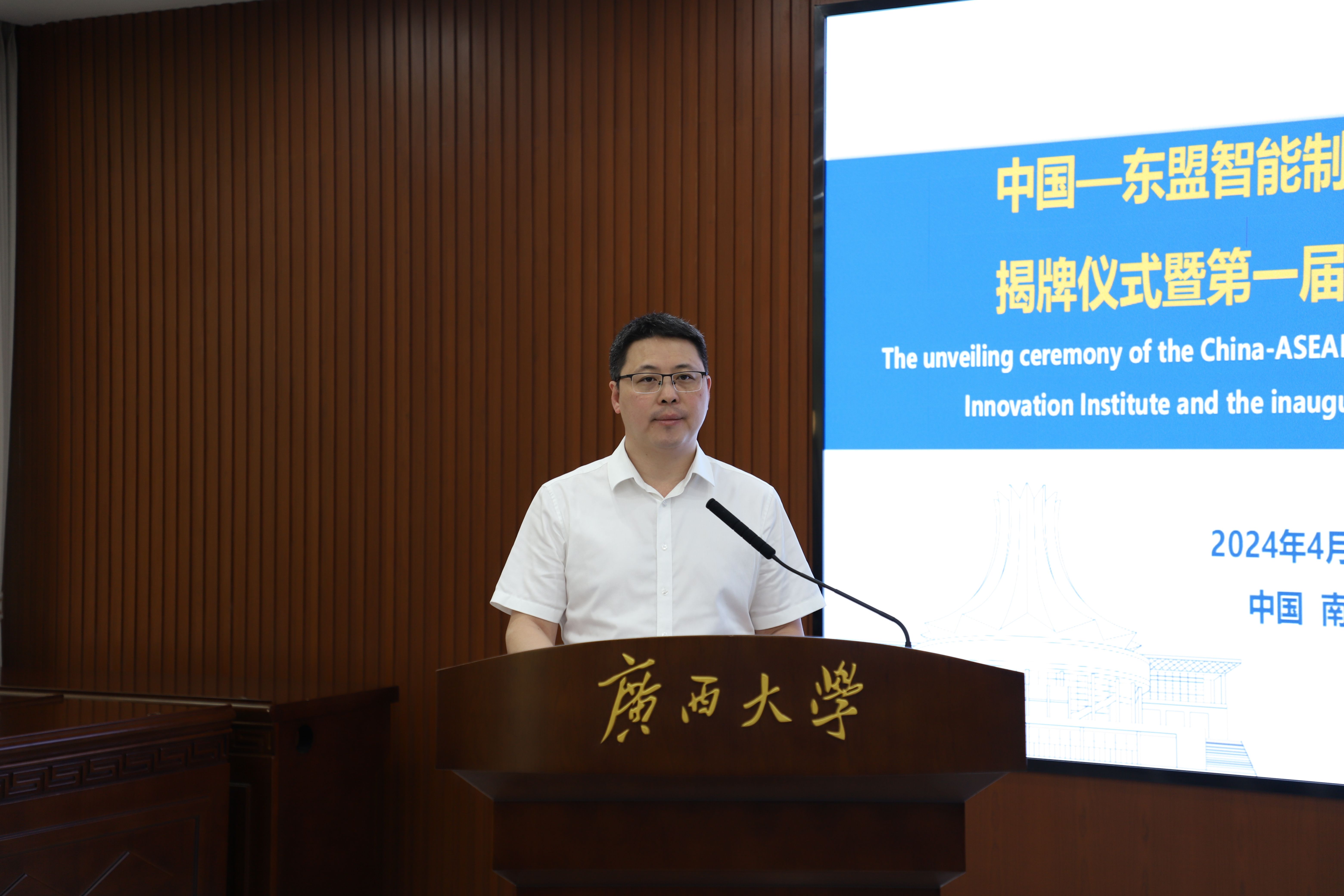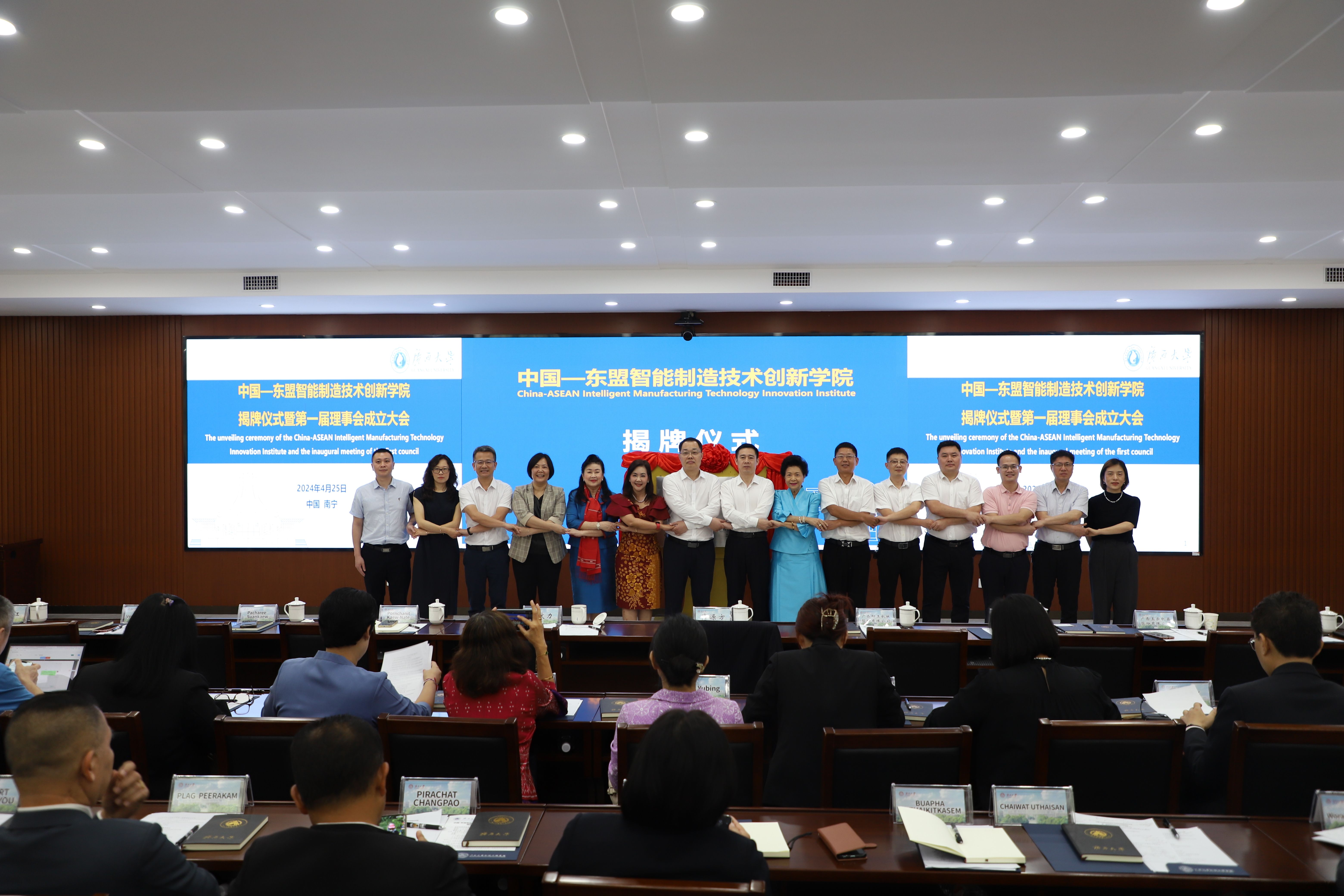 4月25日上午,由beat365官网牵头的中国-东盟智能制造技术创新学院在我校揭牌成立。校党委常委、副书记马献力、自治区教育厅高教处处长兼学位管理与研究生教育处处长(自治区学位办主任)傅源方共同为技术创新学院揭牌。