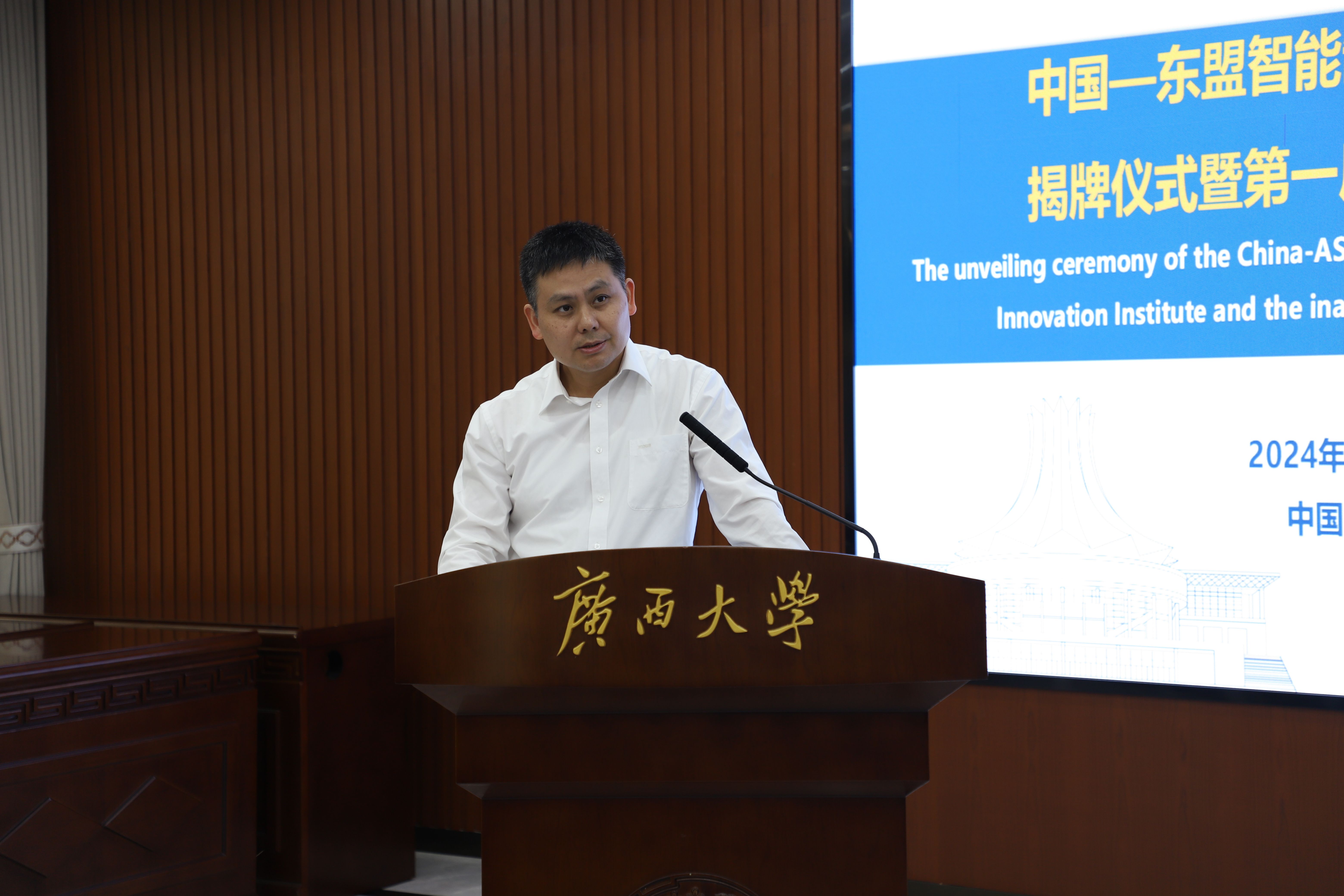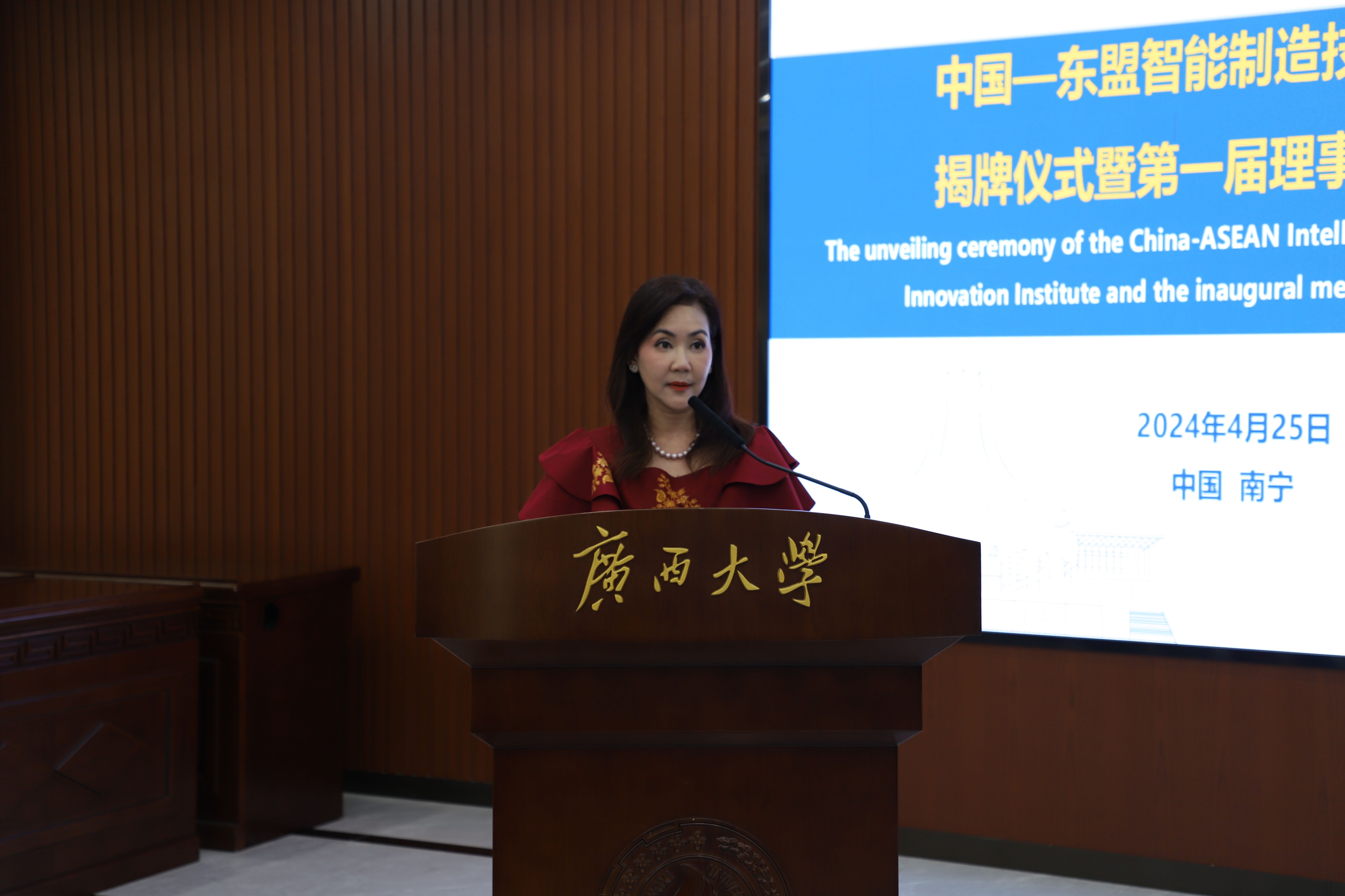 揭牌仪式上,马献力代表学校对中国-东盟智能制造技术创新学院的成立表示祝贺。他强调,学校历来重视与东盟国家高校的合作与交流,聚焦“亚热带、东盟、海洋、边疆民族”办学特色,与东盟国家深入开展多项中外联合办学及科研合作,学科国际影响力不断提升。今年,广西政府聚焦打造中国职业教育创新高地、服务中国-东盟共同发展,批准建设首批10所与区域特色优势产业深度融合的高起点、高标准、高水平的技术创新学院,重点培养支撑产业技术创新的高层次技术人才,解决产业发展的关键技术问题,推动重大科技成果产业化。由我校beat365亚洲版官网牵头建设的“中国-东盟智能制造技术创新学院”就是其中之一。中国-东盟智能制造技术创新学院的成立和建设,是我校积极落实“深耕东盟,着眼世界”的国际化发展战略的一项重要举措,也将为自治区建成立足广西、面向东盟、服务共建“一带一路”的职业教育对外开放合作创新高地贡献重要力量。